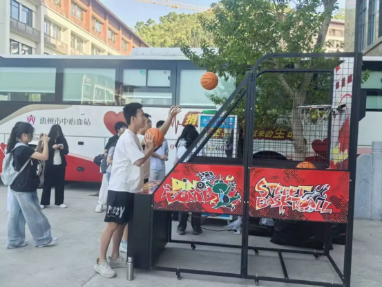 献血活动现场温情涌动,采血点前,志愿者们耐心引导,井然有序的队伍成为校园里最动人的风景。副校长肖海,党委副书记、副校长张志红,惠州博罗校区管委会党总支书记钟任鹏,学生处副处长林国健亲临现场关怀慰问献血师生,与血站医护人员深入交流,详细了解献血流程与后勤保障措施。同学们相互鼓励,共同的善举让“奉献、友爱、互助、进步”的志愿精神在校园内熠熠生辉。本次活动融入多种互动元素,现场设置了十五运会和残特奥会打卡墙,学生们在献血前后合影留念,记录这一爱心时刻。一位刚完成献血的同学坚定地表示:“作为青年学子,这是我们能为社会做的最实在的贡献。”朴实的话语,道出了所有参与者的共同心声——用青春热血为生命护航,用点滴善举诠释青年担当。